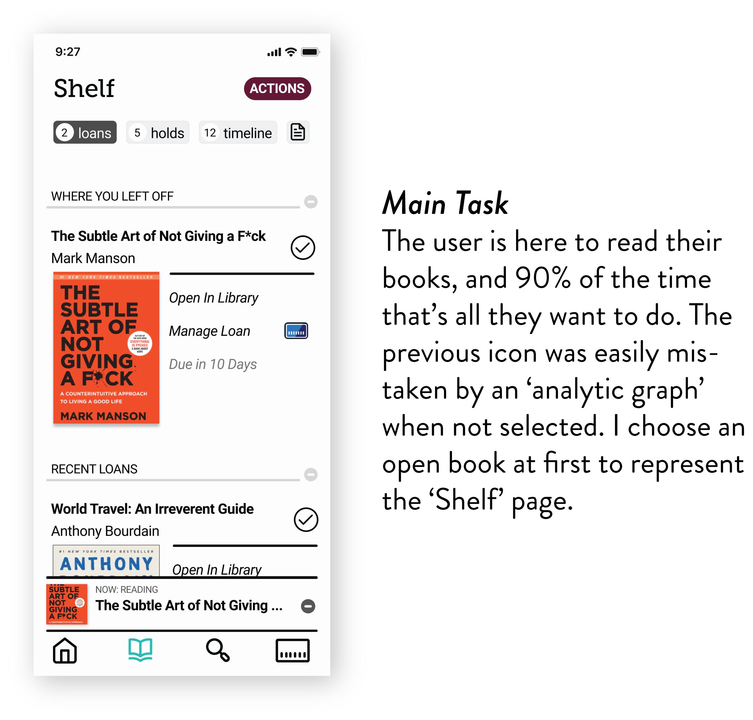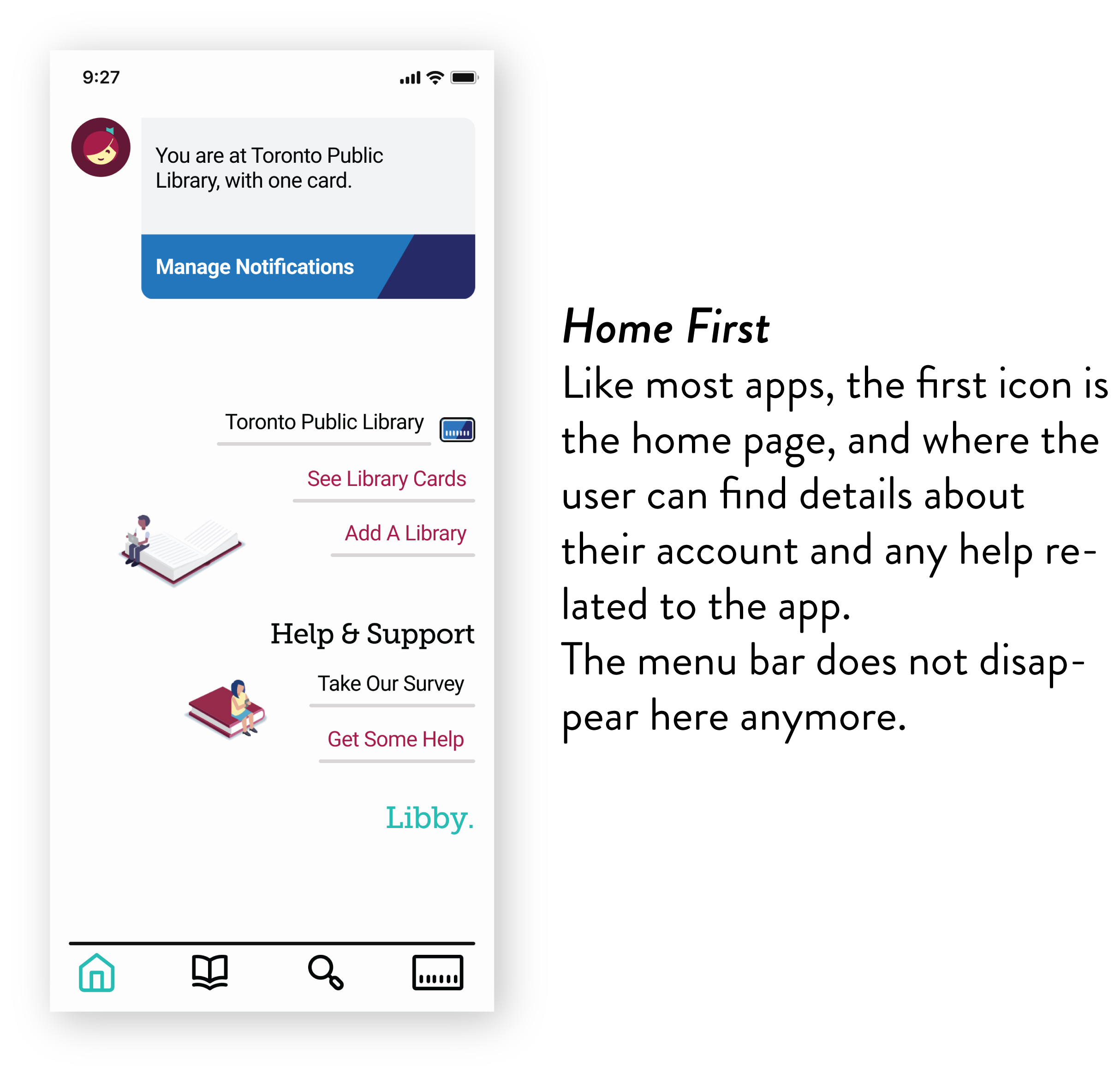 With real-life user insights about my design, I went back to the board to make some changes. By making these alterations, I hope to improve the effectiveness of the new menu and the overall Libby experience.