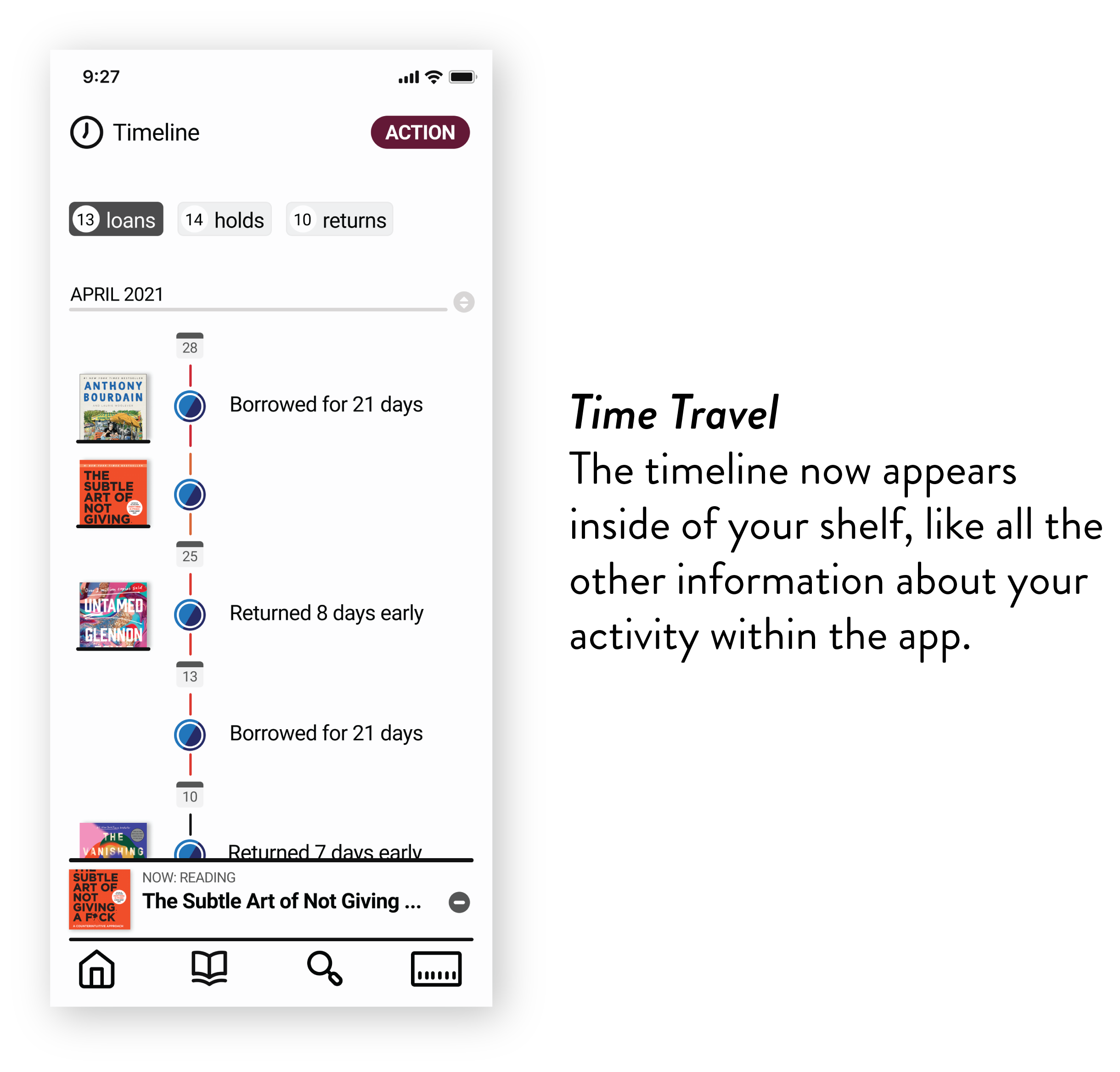 Most users think the ‘Timeline’ icon on the menu bar is a feature that how much time you have left with your loans or something like that. That is not accurate and it leads people to frustration out of necessity. Most people would look into that information inside of their ‘Shelf’ page.