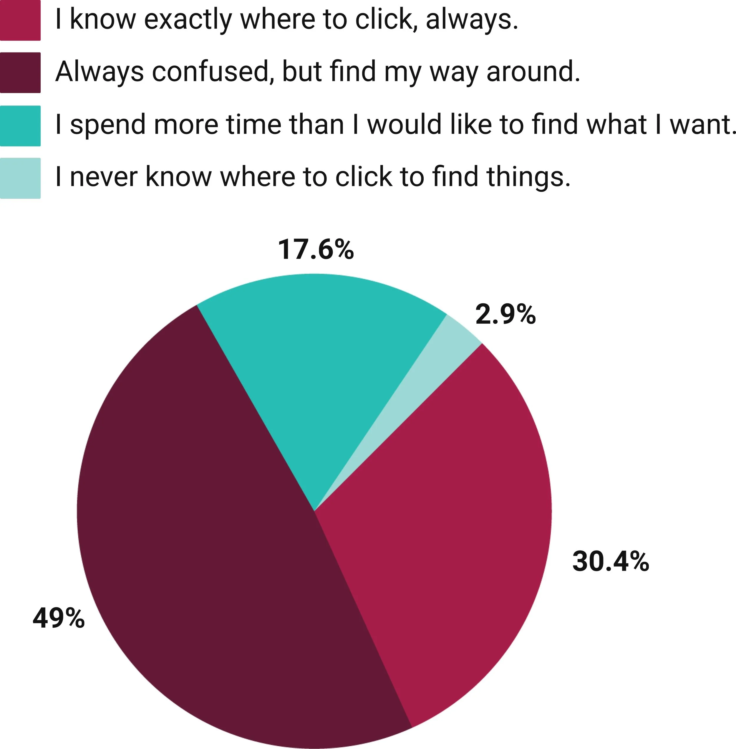 A survey was used to get a general idea of who the users are and what is their generic experience with the app. The goal was to develop a deeper understanding of familiar navigation patterns and how people use them; and from these findings, determine the hierarchy of information and where to look for insights and solutions.