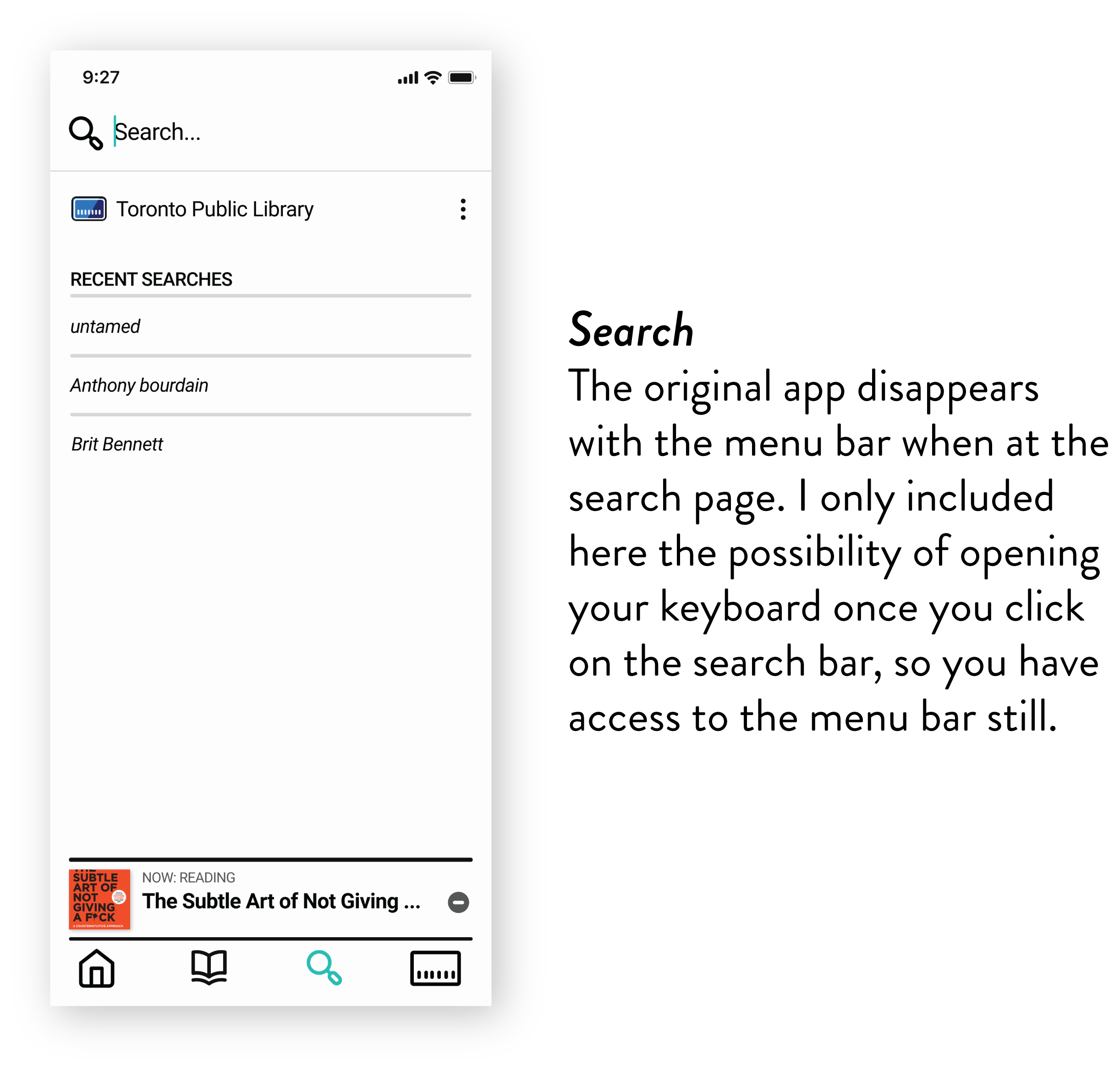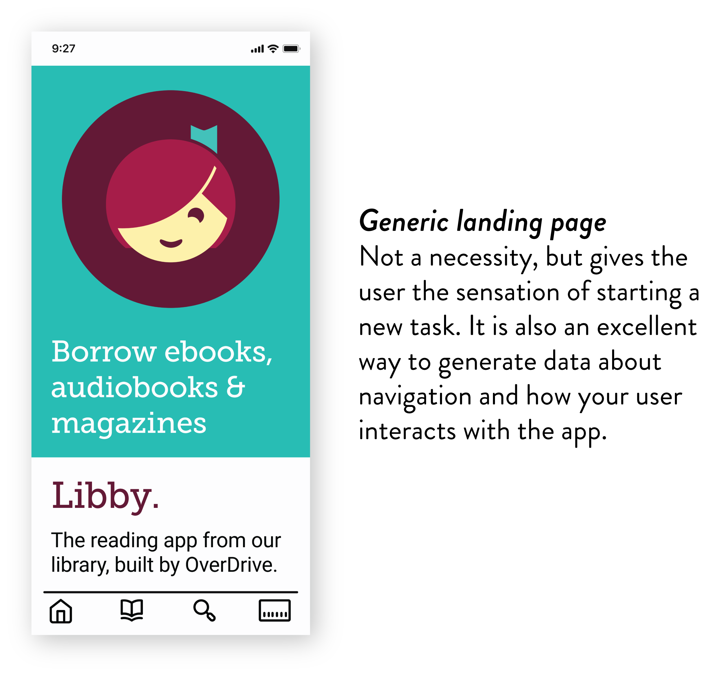 However, the app developer (OverDrive) released an update not long ago and implementing big changes is not an option. The goal is to optimize the navigation with the minimal interference as possible in the current design.
