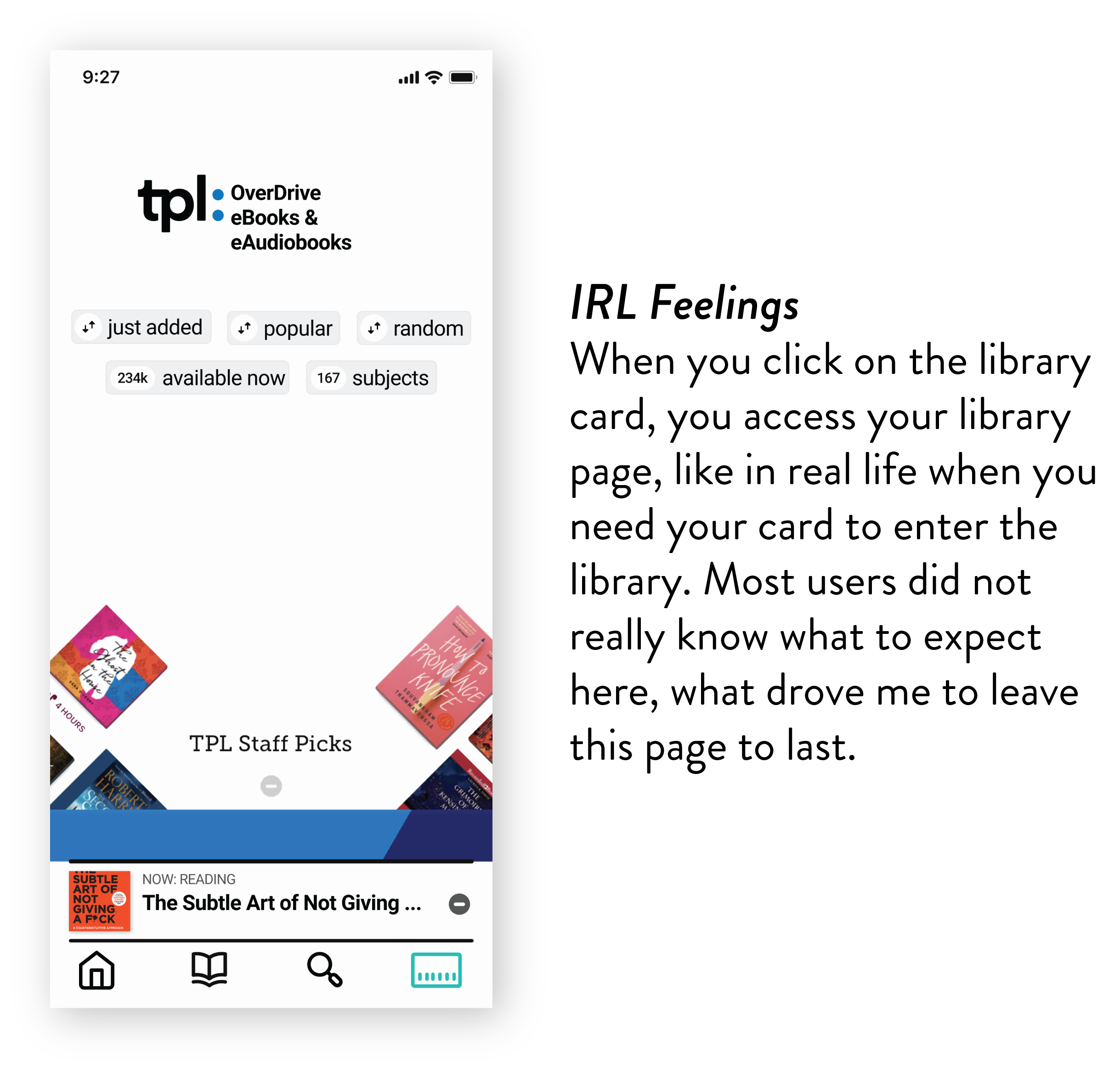 The project was inspired by my own struggles using the Libby app daily. I wanted to work on finding solutions for the problems I faced instead of redesigning something already great.